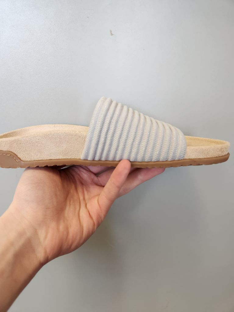 Evie Knit ($134.95+HST at time of writing.) – The Evie knit is a very nice one-strap sandal/slide. It comes with a nice arch support that is softer than something like a Birkenstock and a wide strap to hold the foot well. We did bring it in 4 colours (2 lighter, 2 darker) and will hope the weather comes soon to justifying wearing them!