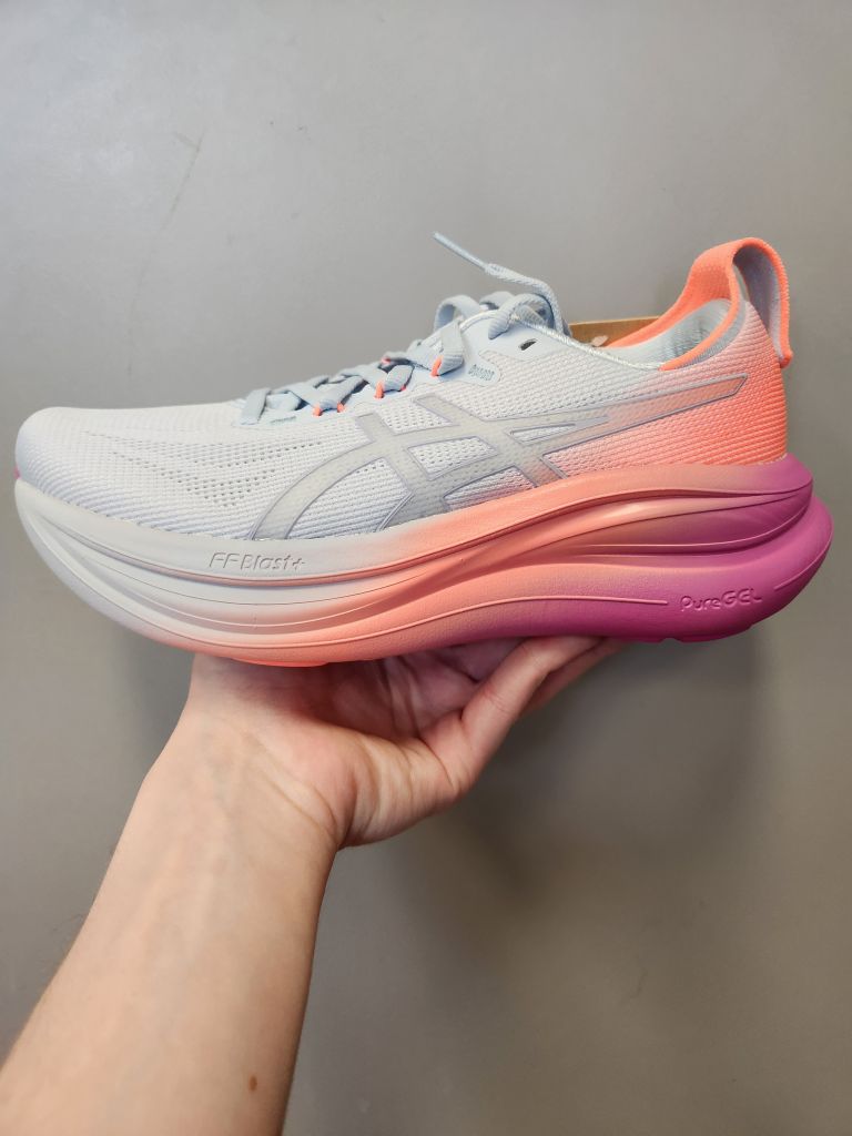 Just got to start off by saying that I really like some of the colour options that Asics offered this year. Regardless, we got in our spring hit of Asics shoes which does include a top up of new colours for kids and adults. For the Adults we focused on the Gel-Kayano 32 ($219.95+HST at time of writing) and the Gel-Nimbus 28 ($209.95+HST at time of writing.) We had the Gel-Kayano 32 in the fall and found it still remains one of our favourite stability shoes since it balances a thicker sole with a good dense cushion base (it also has a great stability system and the Gel in the heel and forefoot.) The Nimbus 28 is a new version (not exactly sure on when it launched but as far as I’m aware it is a spring update.) They are still keeping the sole on the very thick side but it does feel like the compound got a bit denser than the 27 which with the thickness again is not a bad thing.